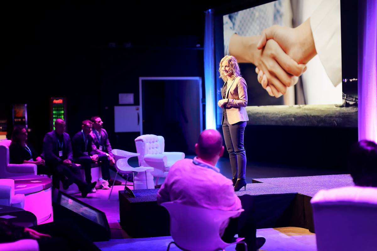 In haar lezing Body Language in business verklaart psycholoog en lichaamstaalexpert Denise Dechamps op fascinerende wijze waarom lichaamstaal het meest impactvolle deel is van onze communicatie op de werkvloer. Of je nu ondernemer bent of werknemer; het gevoel dat je anderen geeft met je non-verbale signalen is bepalend voor je succes.